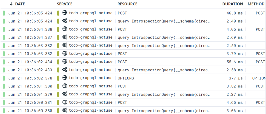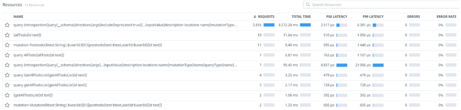 dd-trace에서 graphql 모듈을 별로 서비스 이름으로 수정하면 Trace 항목에서도 확인 가능.