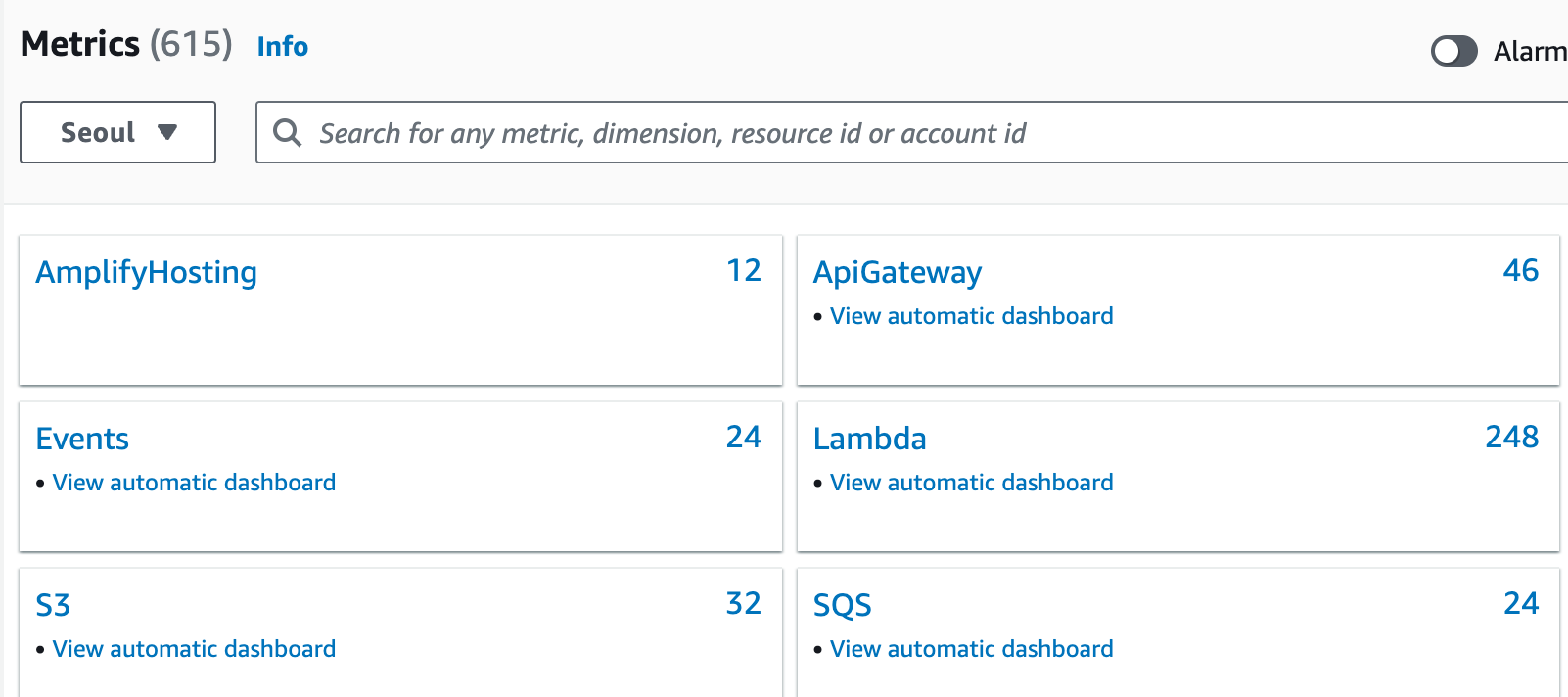 먼저 아래와 같이 CloudWatch에서 수집하는 Metrics의 개수를 확인합니다.