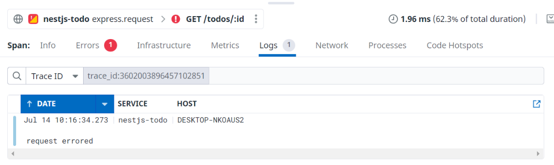 만약 데이터독과 인티그레이션 되지 않은 모듈이나 플랫폼들을 에러 트래킹 하기 위해서는 custom span을 이용한다.