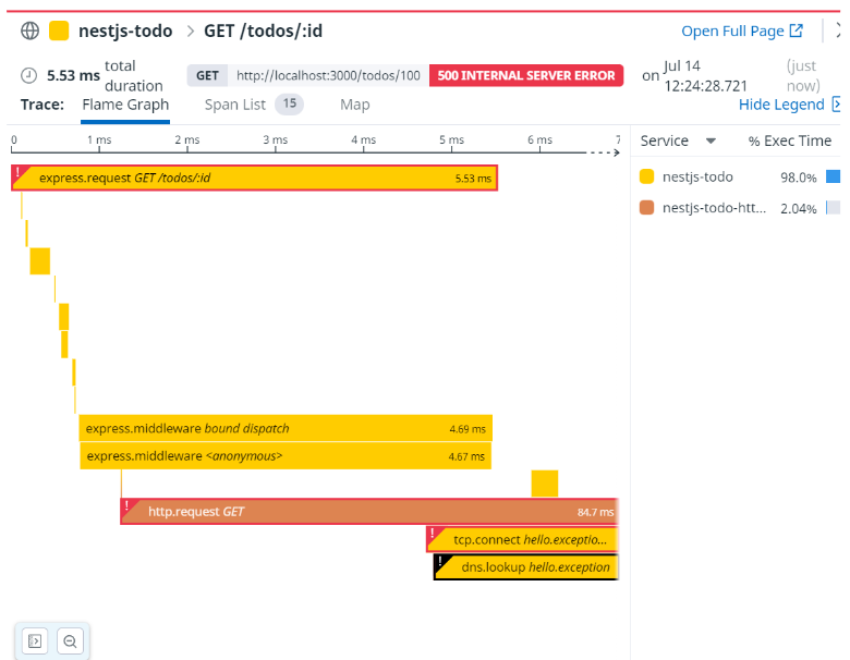 https 관련 모듈은 dd-trace(node.js)에서 호환 되어 있기 때문에 해당 exception을 바로 확인할 수 있다.